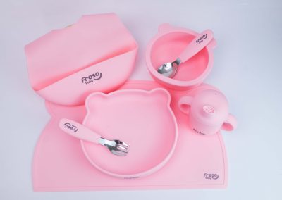 Descrição: Kit Alimentação em silicone 7 peças Rosa