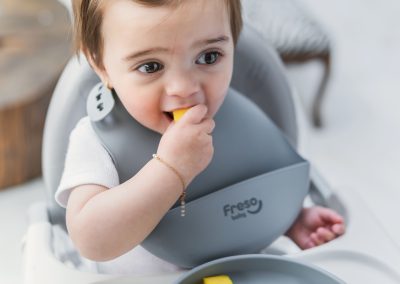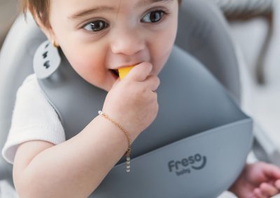 Feito em Silicone de grau Alimentício, Atóxico e Livre de BPA, o Babador com Bolso Freso Baby é ótimo para a Alimentação dos bebês e é indicado para as mamães que usam o Método BLW de introdução alimentar. Impermeável, o babador de silicone preserva a roupa do seu bebê seca e limpinha durante as refeições.