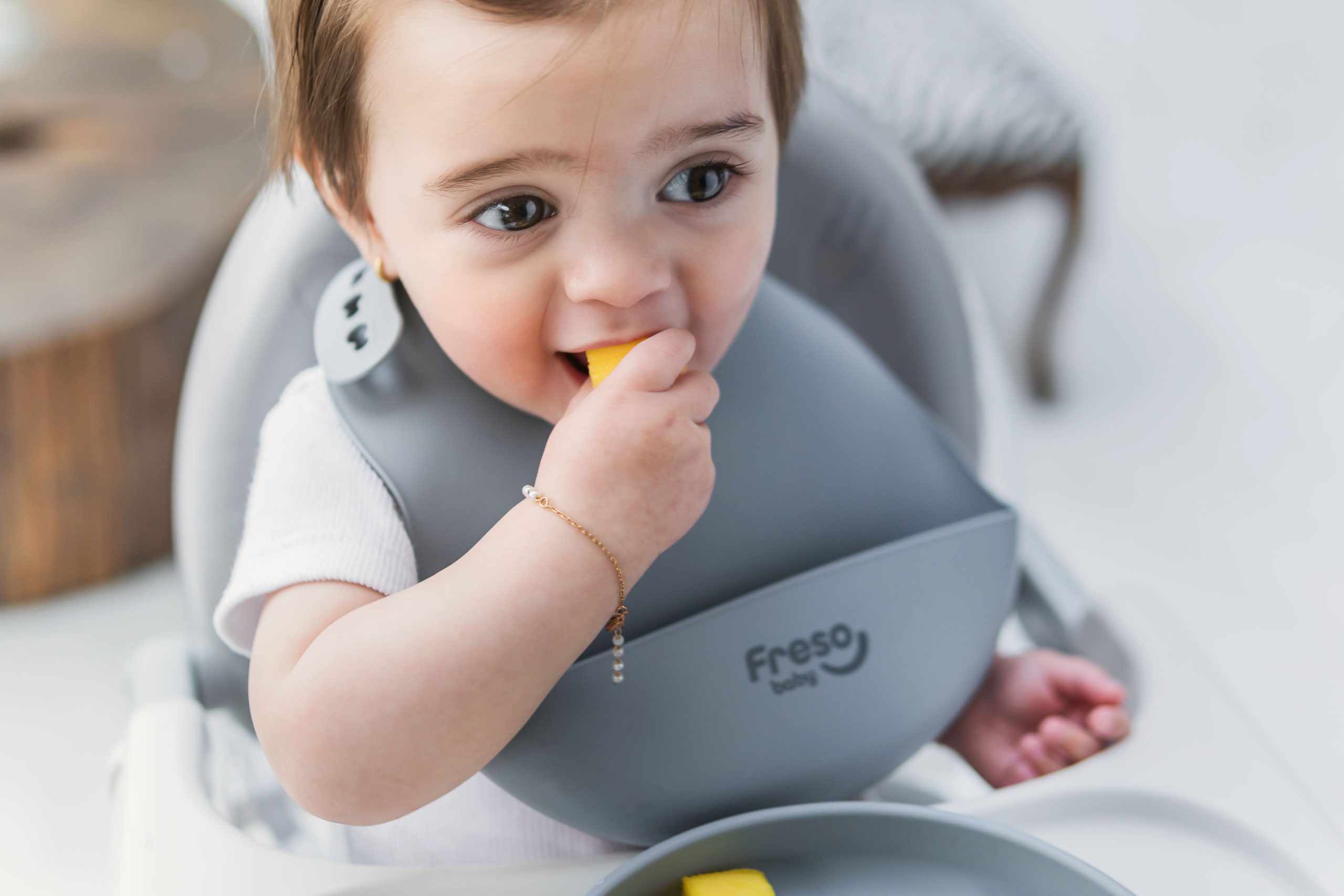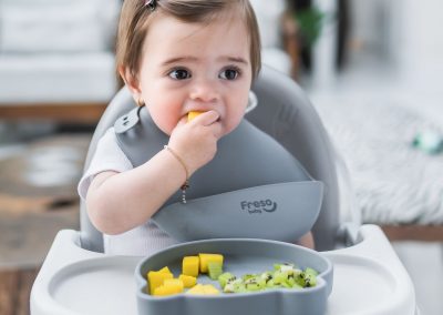 Feito em Silicone de grau Alimentício, Atóxico e Livre de BPA, o Babador com Bolso Freso Baby é ótimo para a Alimentação dos bebês e é indicado para as mamães que usam o Método BLW de introdução alimentar