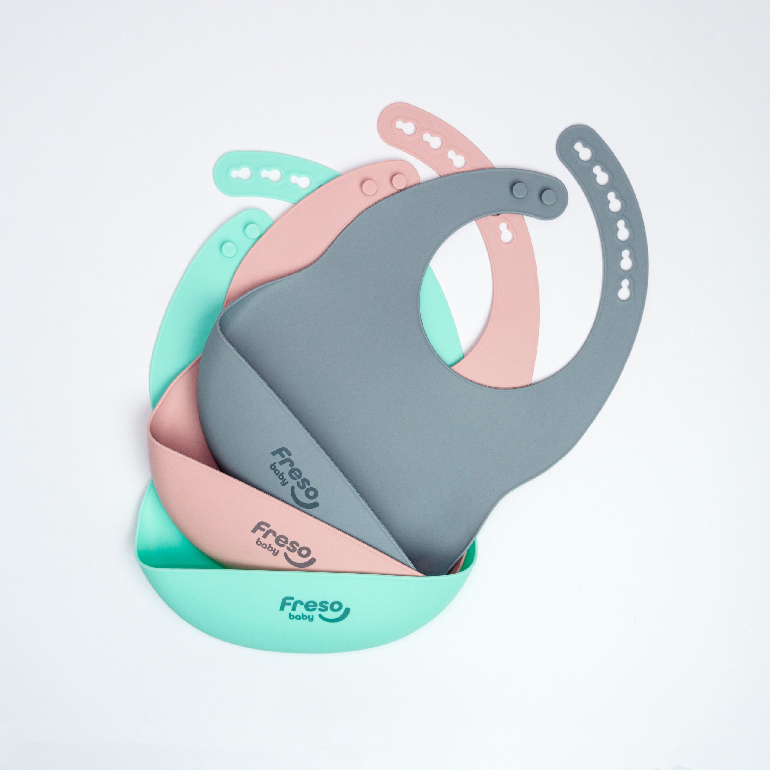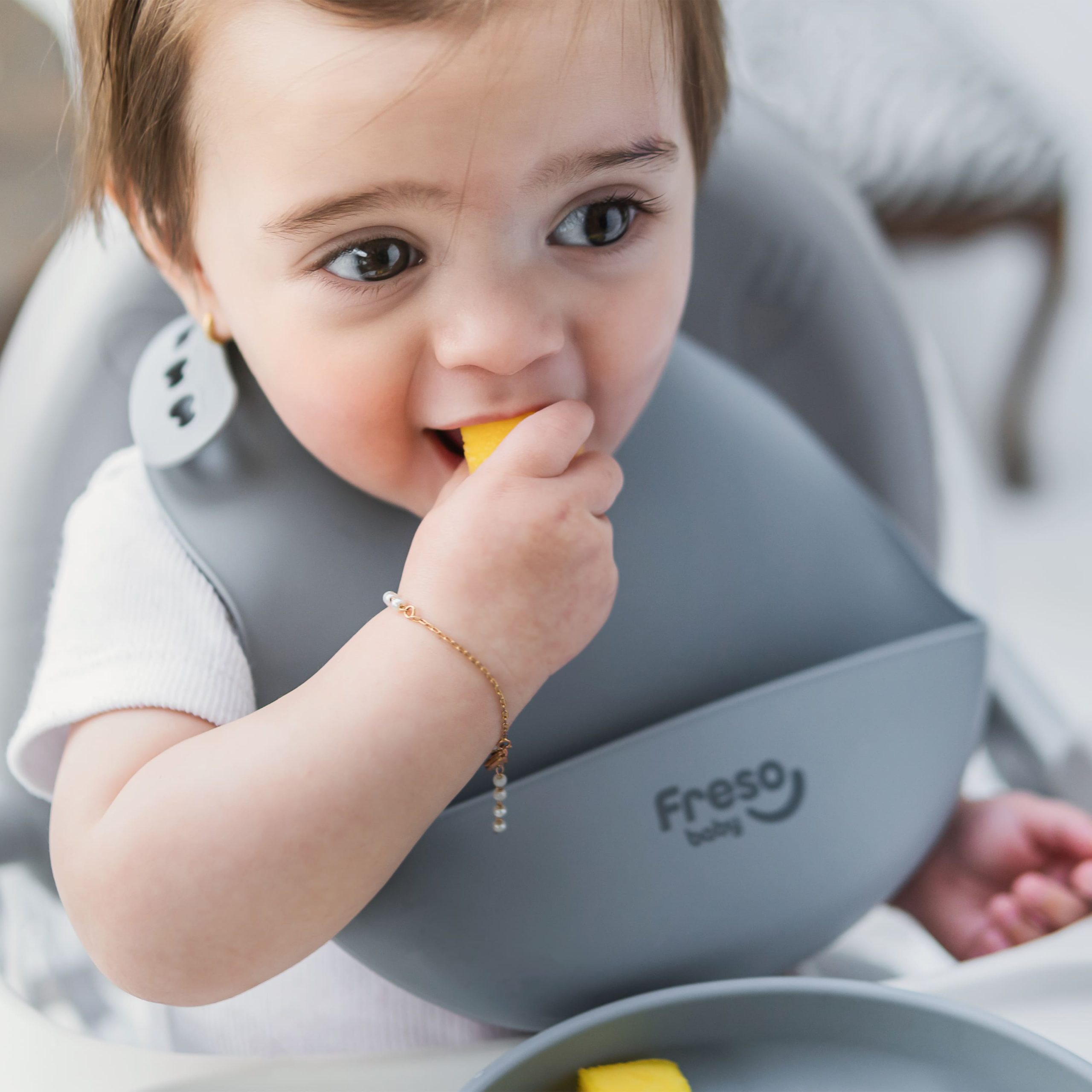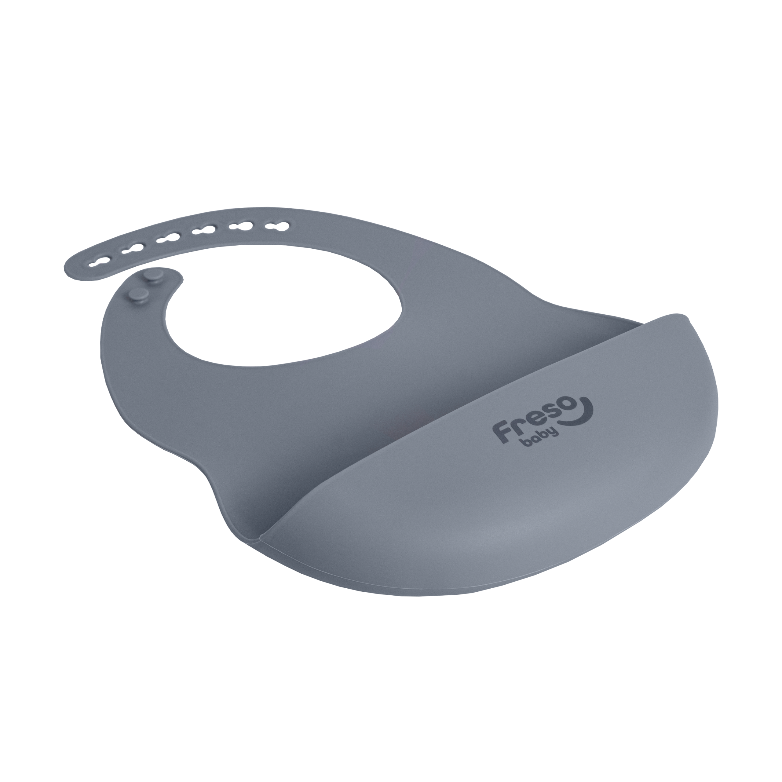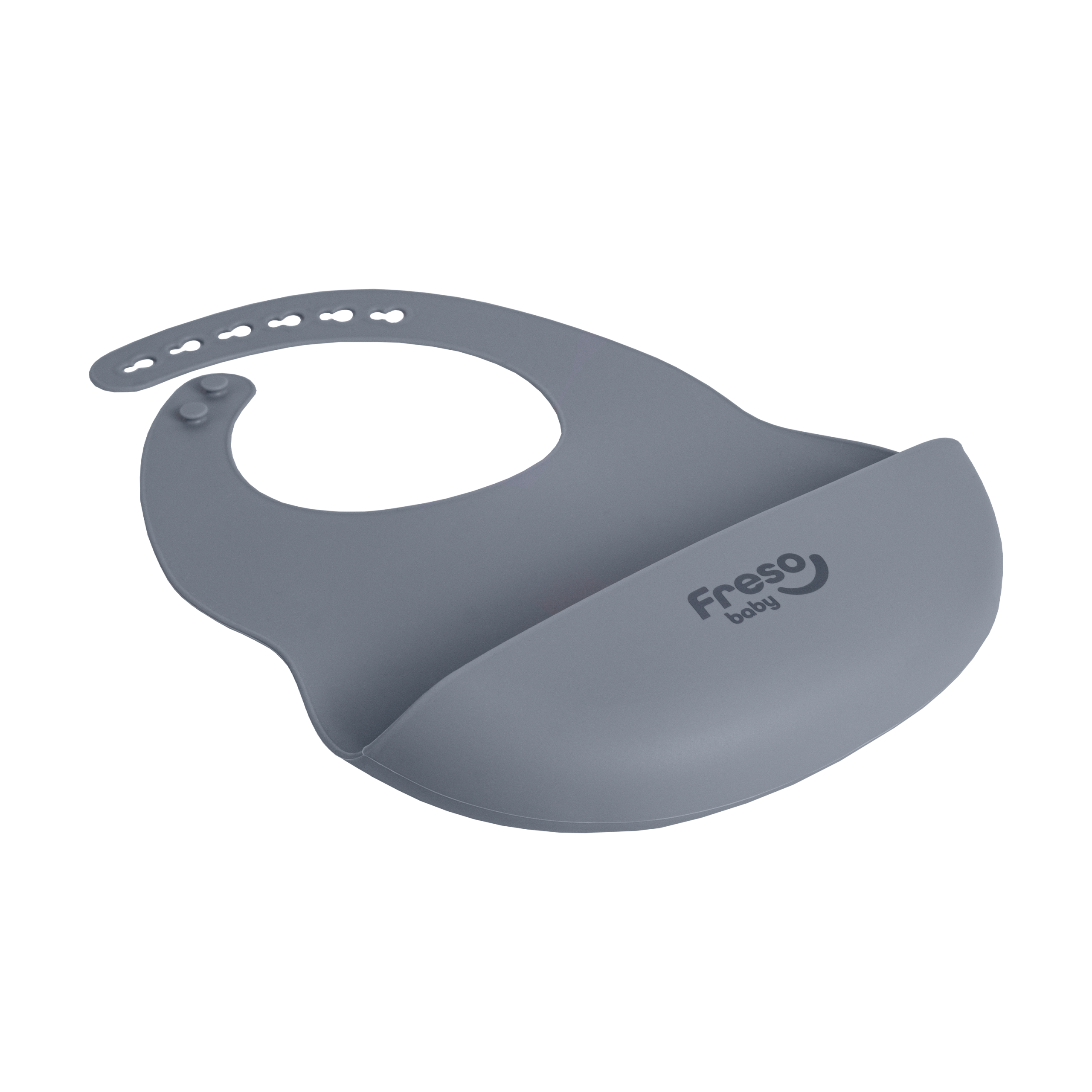 Até 256 caracteres: Freso Baby Babador Silicone Livre de BPA Alimentação Bebê Introdução Alimentar BLW Impermeável Fecho Ajustável com Bolso Coletor de Alimentos Pega Migalhas Hipoalergênico e Macio, Leve, Fácil Higienização e Atóxico Cinza