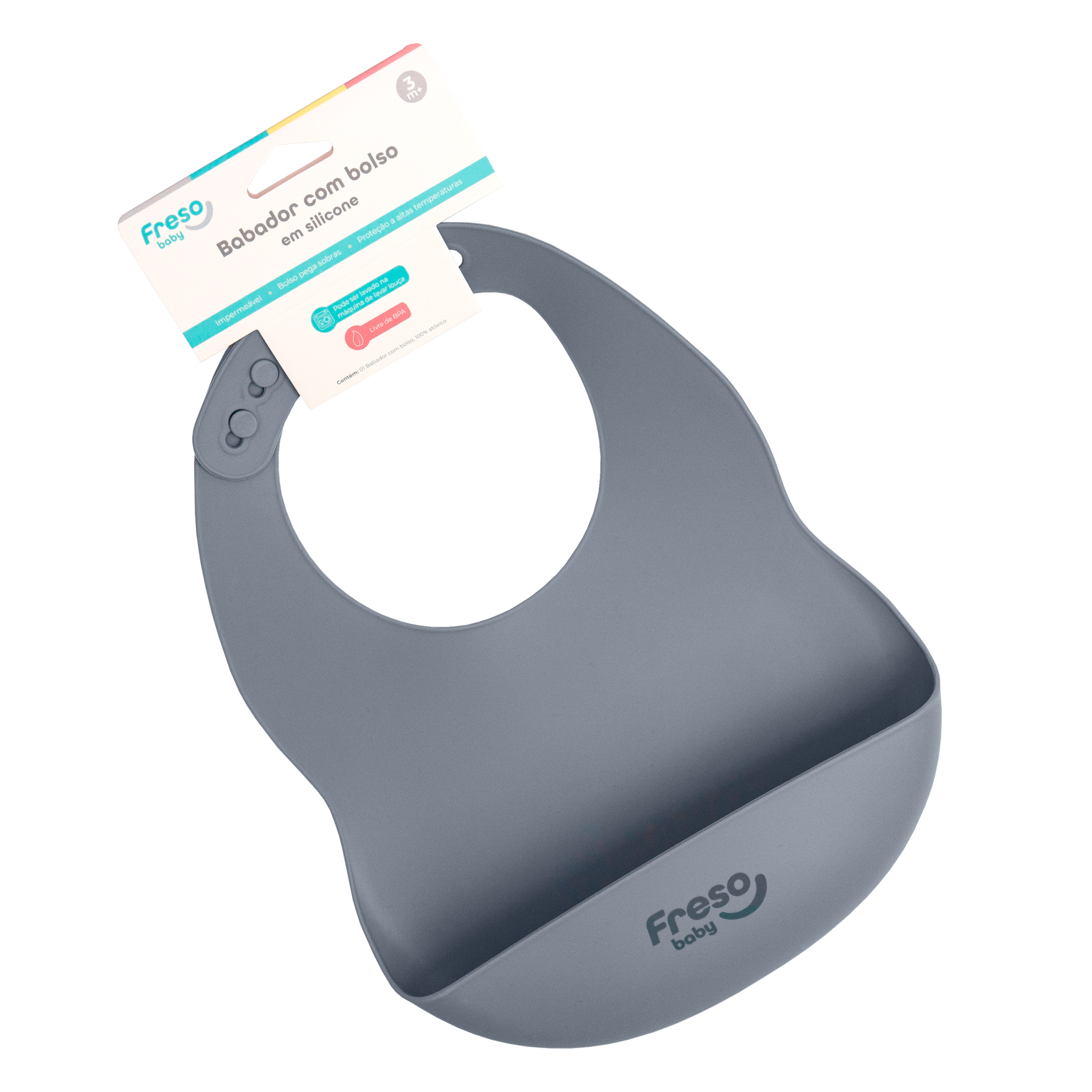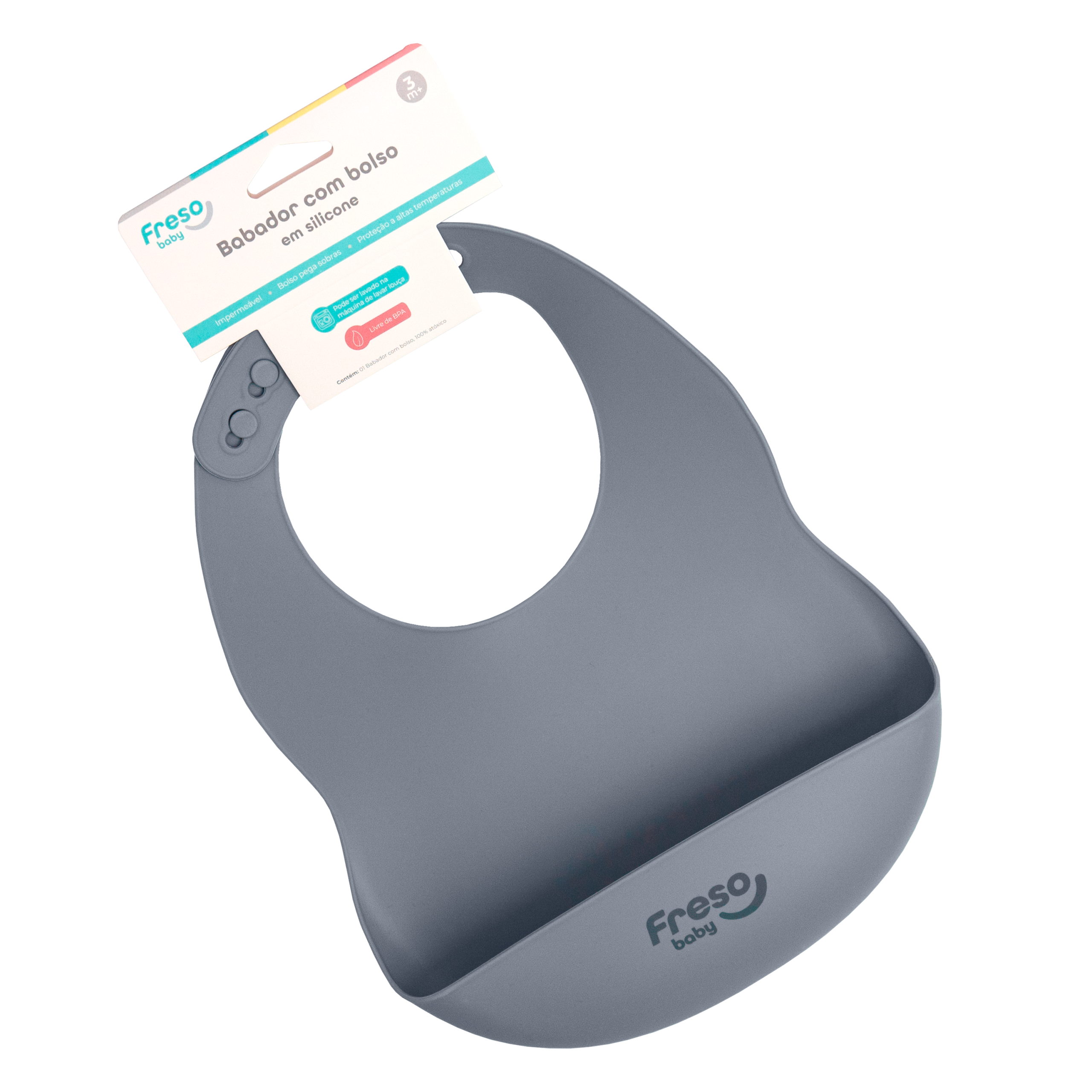 Descrição: Freso Baby Babador com Bolso de Silicone Cinza