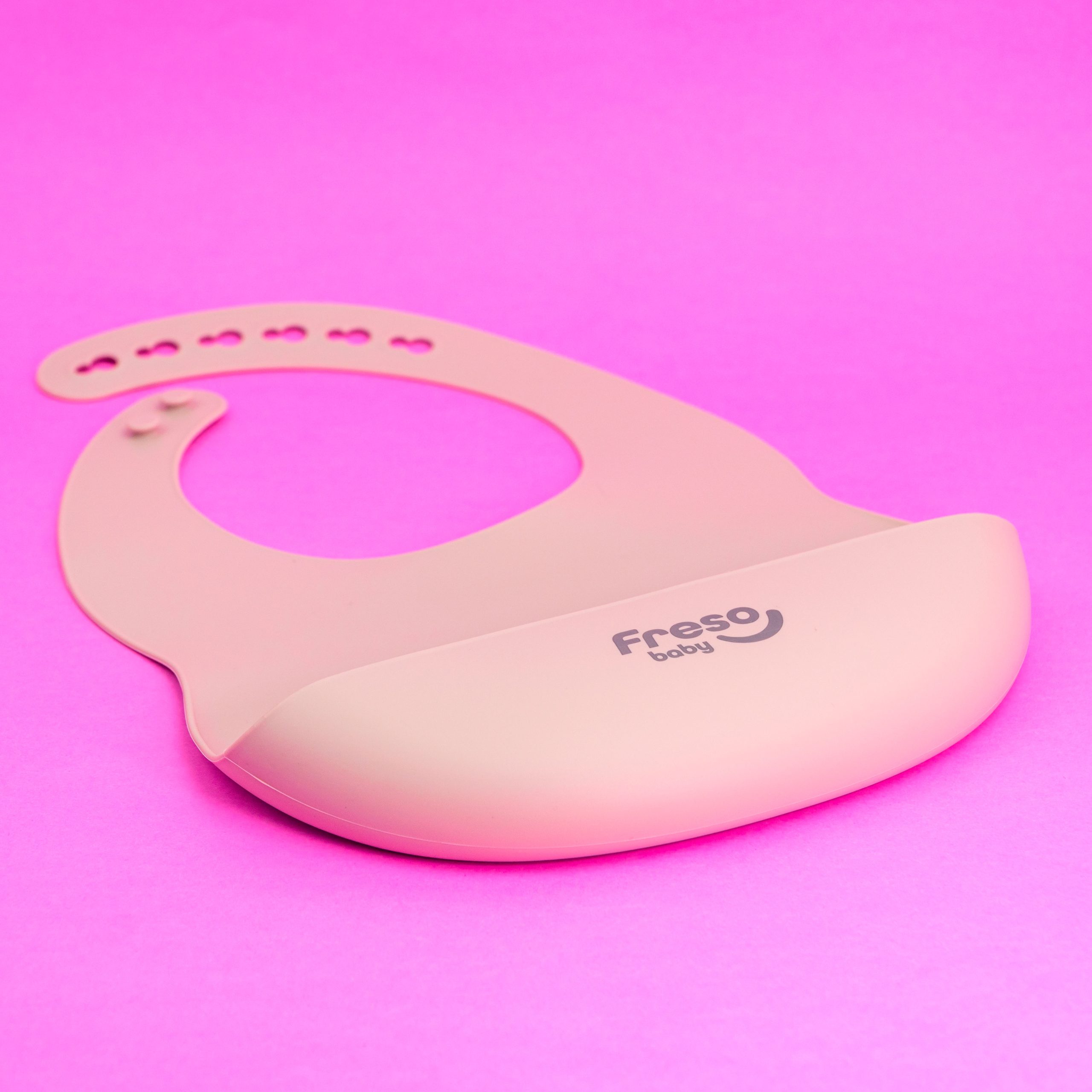 Até 200 caracteres: Freso Baby Babador Silicone Livre de BPA Alimentação Bebê Introdução Alimentar BLW Impermeável Fecho Ajustável com Bolso Coletor de Alimentos Pega Migalhas Hipoalergênico e Macio Leve Atóxico Rosa