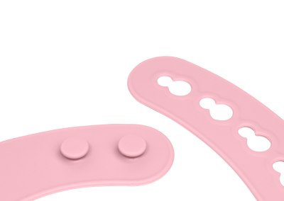 O fecho regulável foi desenvolvido para acompanhar o crescimento da criança, não apertando ou machucando. Já o bolso armazena migalhas e resíduos alimentícios mantendo a roupinha do bebê sempre limpa.