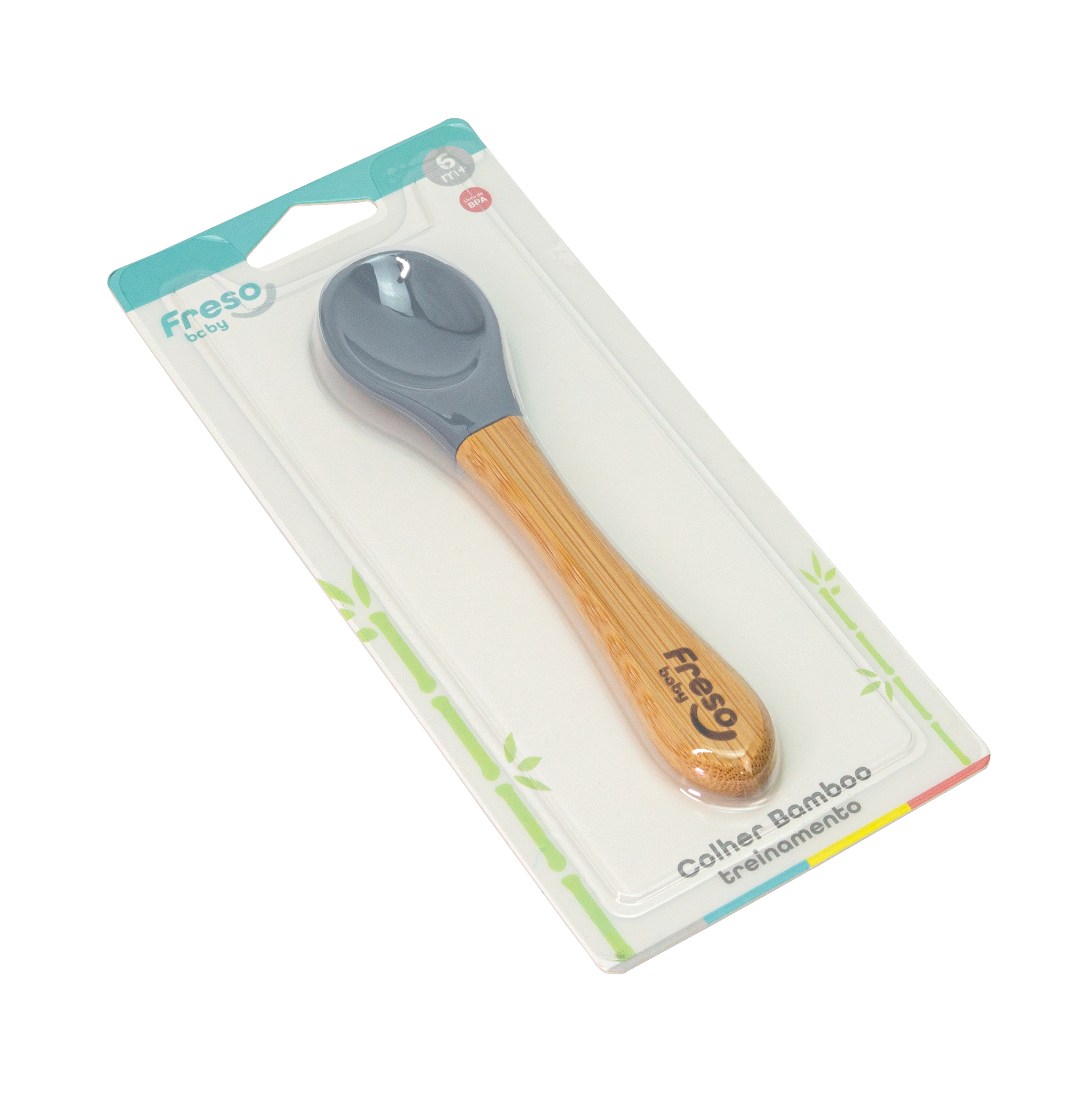 Até 60 caracteres: Freso Baby Colher Alimentação Infantil Silicone Bambu Cinza