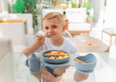 Seu design ergonômico foi desenvolvido para o tamanho das mãozinhas do bebê quando estão começando a autoalimentação, pois permitem mais autonomia e contato com os alimentos. Além disso é higiênico e fácil de limpar.