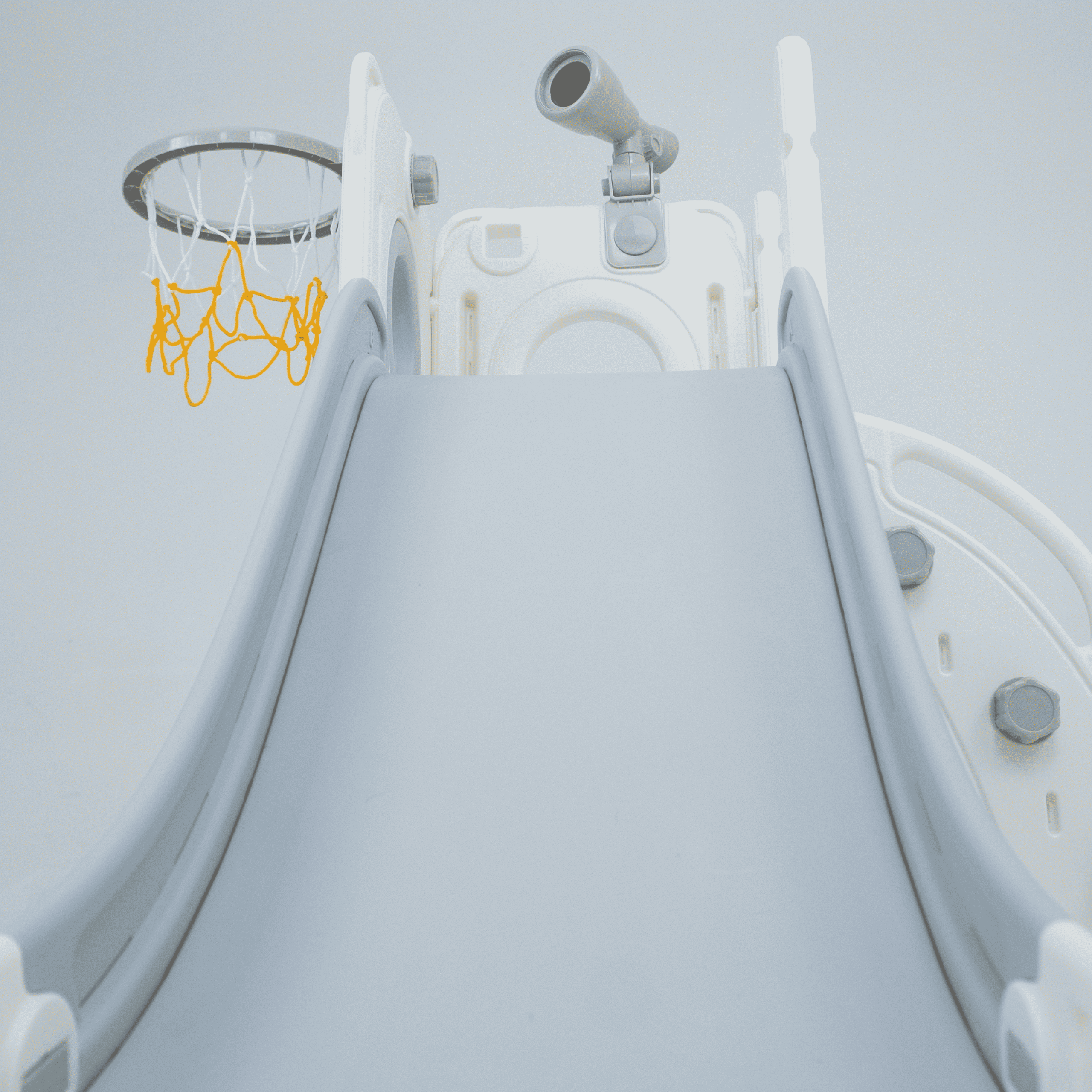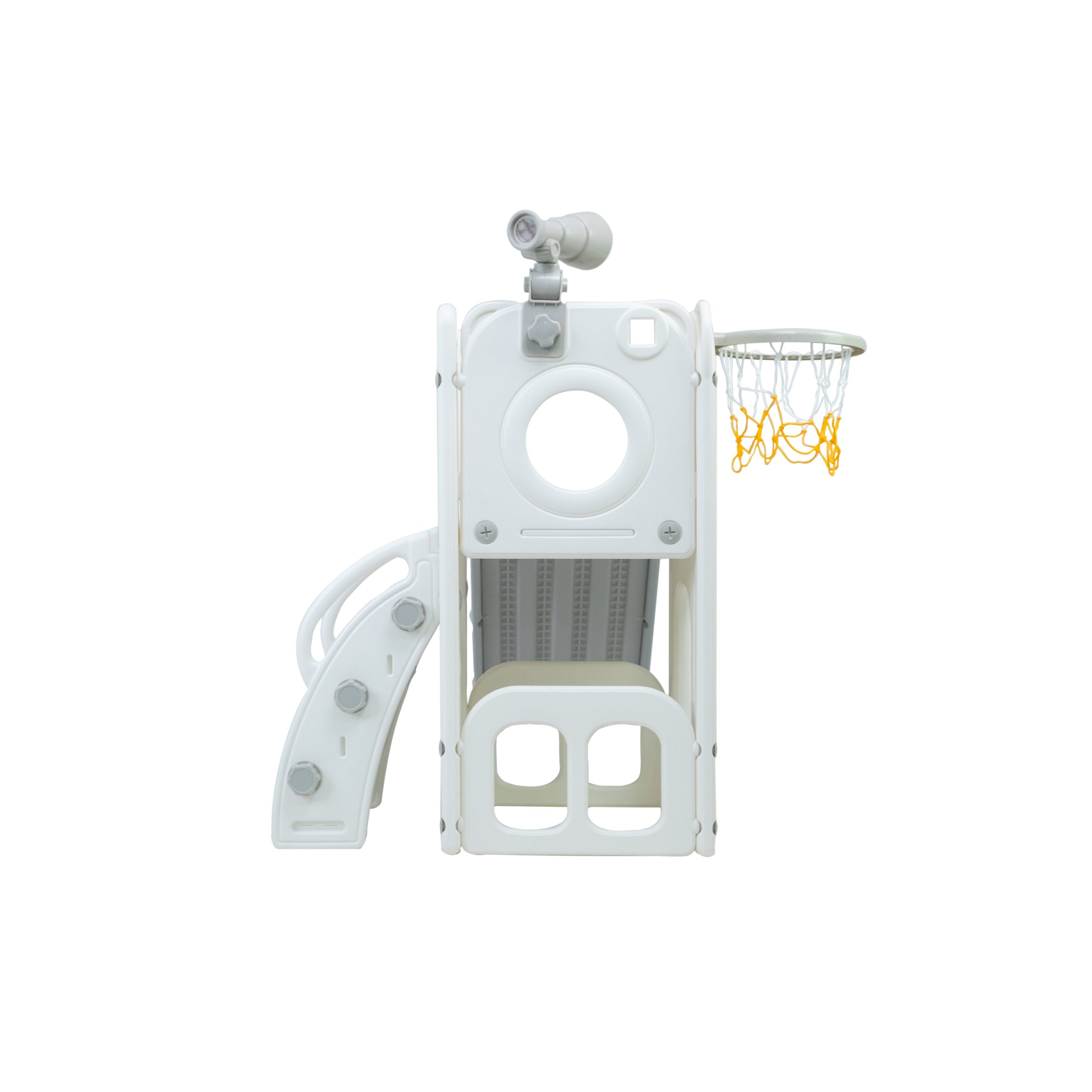 Freso Baby Playground Infantil Mini Mundo Grey 1 Torre, Compacto e Versátil com Escorregador, Cesta de Basquete, Luneta e Atividades Interativas para Crianças Pequenas de 1 a 4 Anos