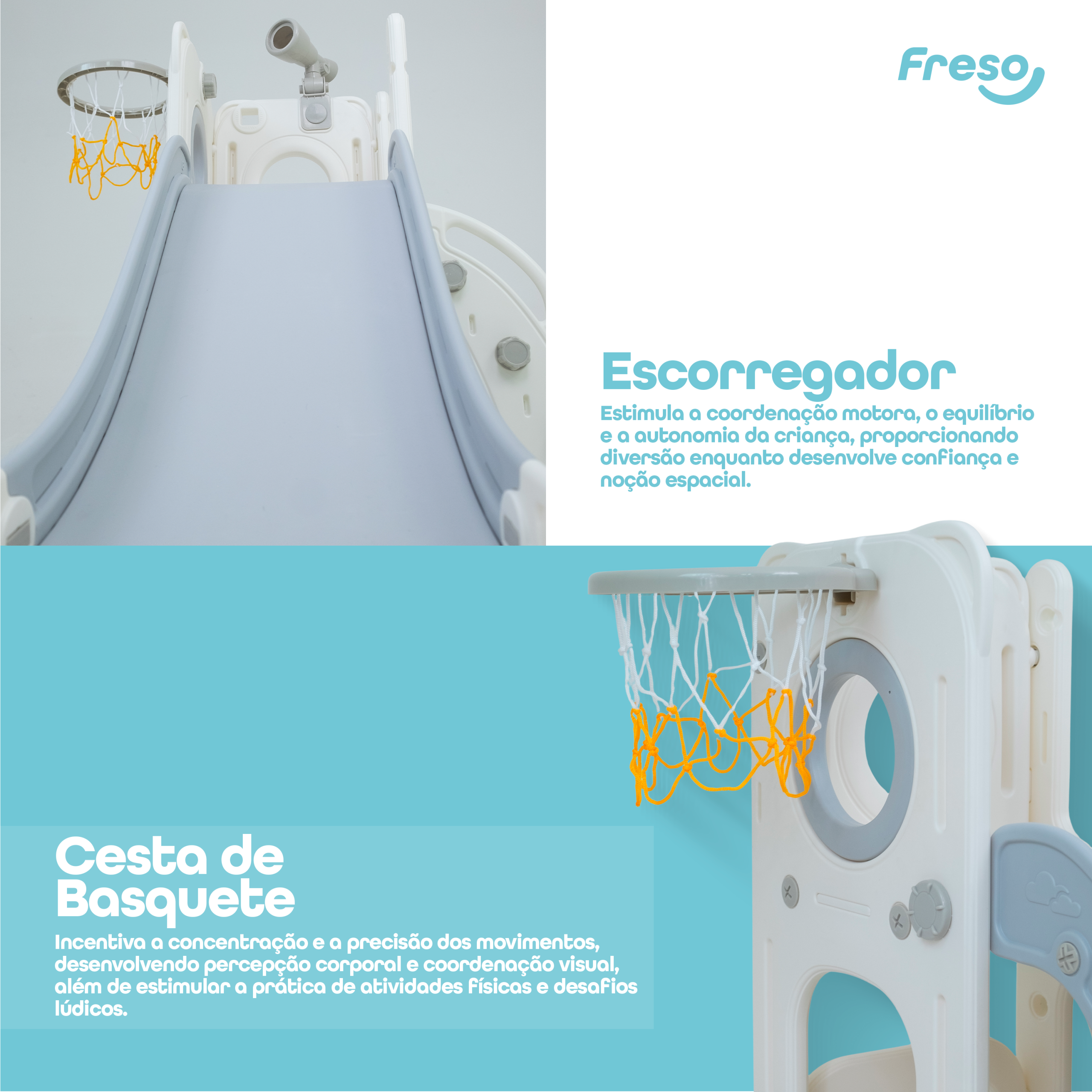 O Playground Infantil Mini Mundo da Freso Baby, é perfeito para crianças de 1 a 4 anos. Compacto e seguro, ele transforma qualquer espaço em um ambiente de diversão e aprendizado.