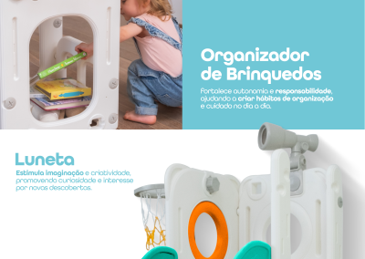 - Guarda-brinquedos, diversão e organização garantida;