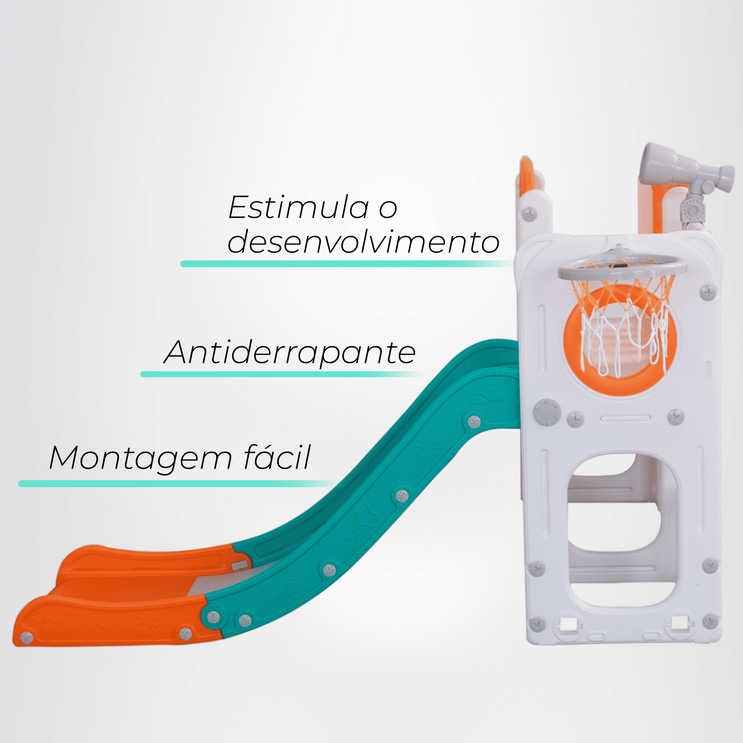 Fácil de montar, compacto e versátil, ele é ideal para ambientes internos, proporcionando horas de brincadeiras com total segurança.