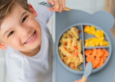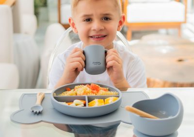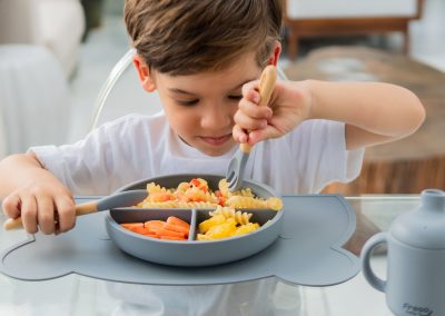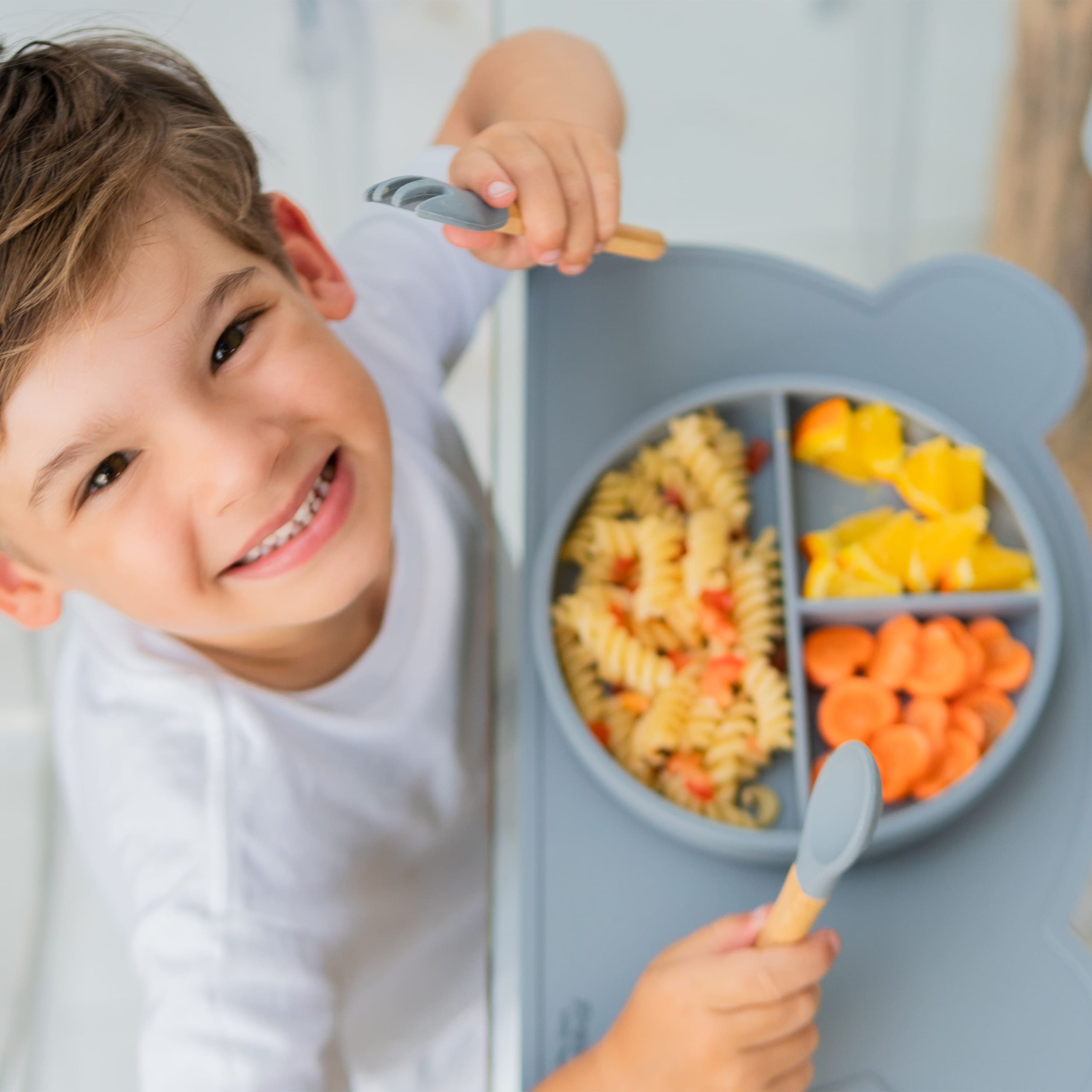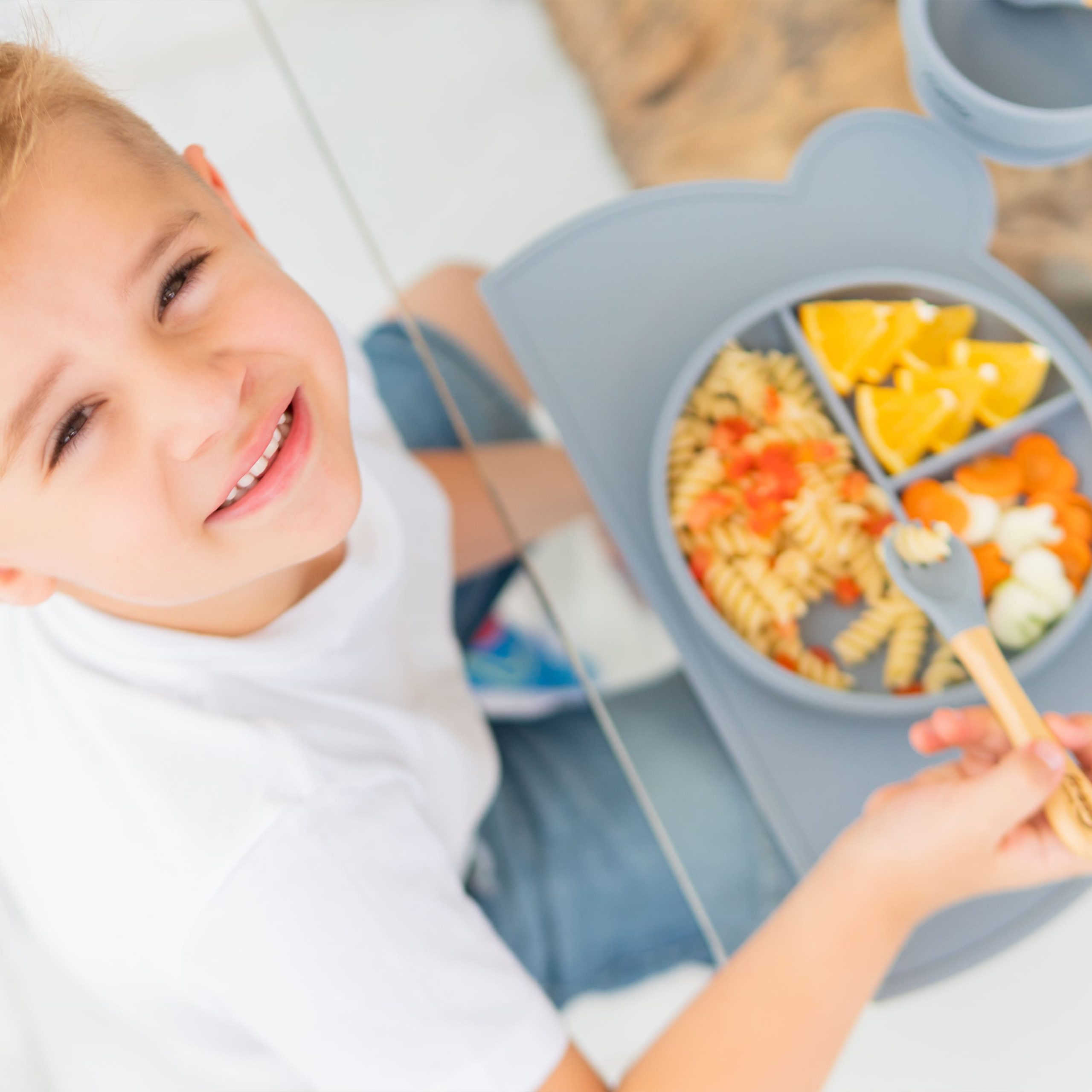 Seu design funcional incentiva as crianças na autoalimentação e suas divisórias proporcionam uma experiência de degustação segmentada, permitindo que você crie refeições saudáveis e balanceadas para seu bebê. Você pode, por exemplo, na divisão grande servir vegetais sazonais e verdes, na divisão média proteínas animais e vegetais e na divisão menor, os carboidratos. É possível servir sólidos e pastosos em um único pratinho infantil.