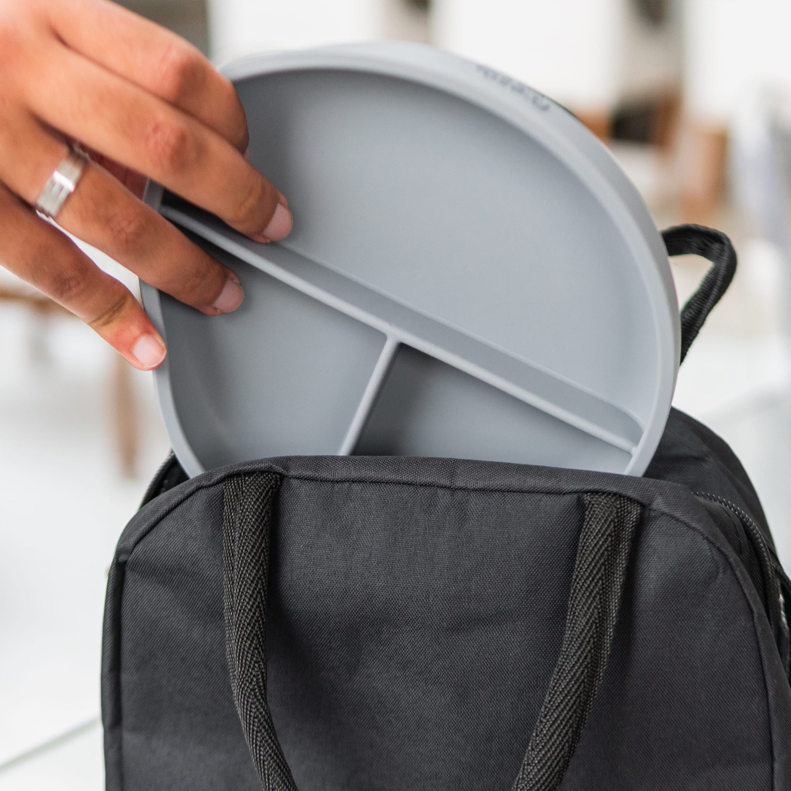 | TÍTULO: | Prato de Silicone com Divisória e Ventosa Cinza |