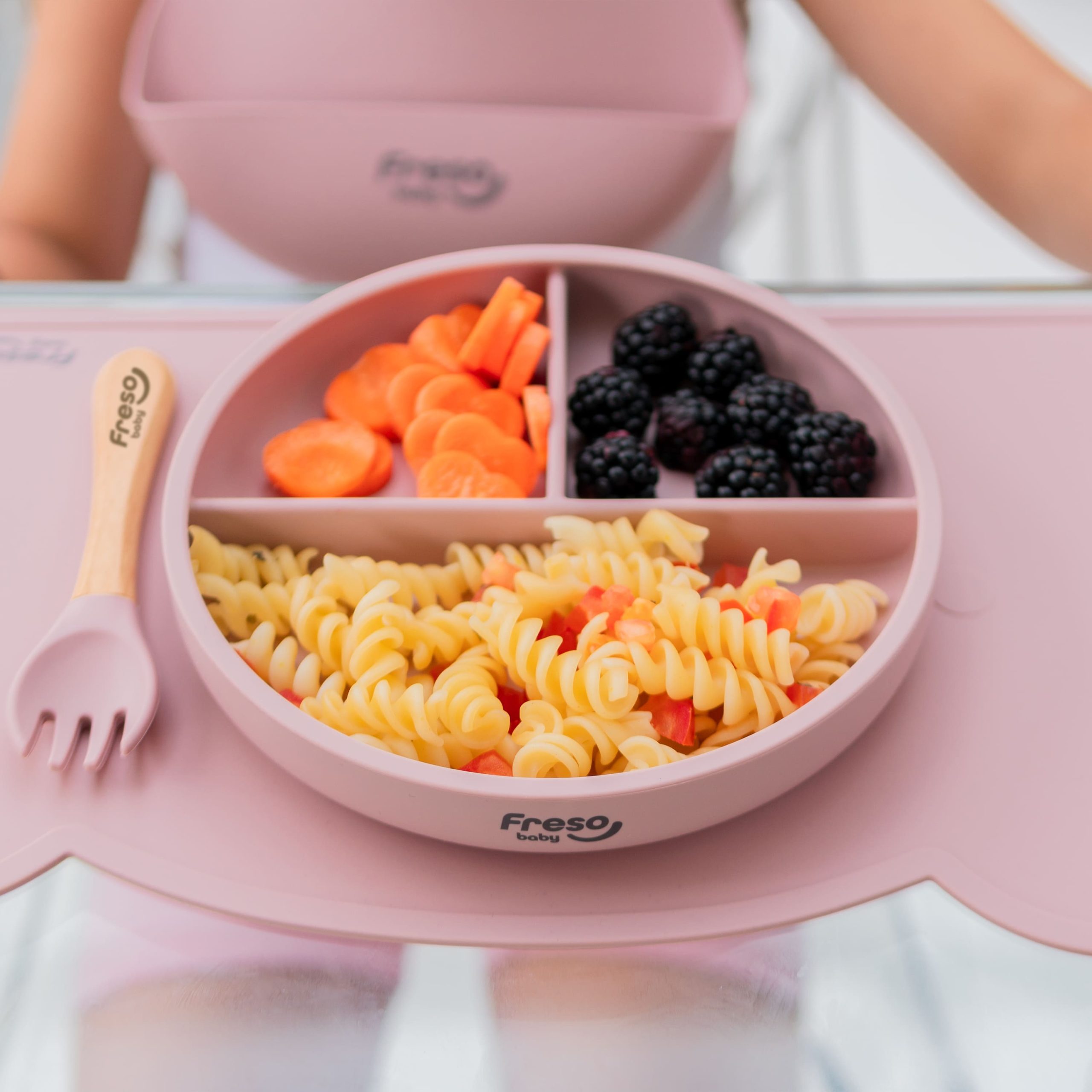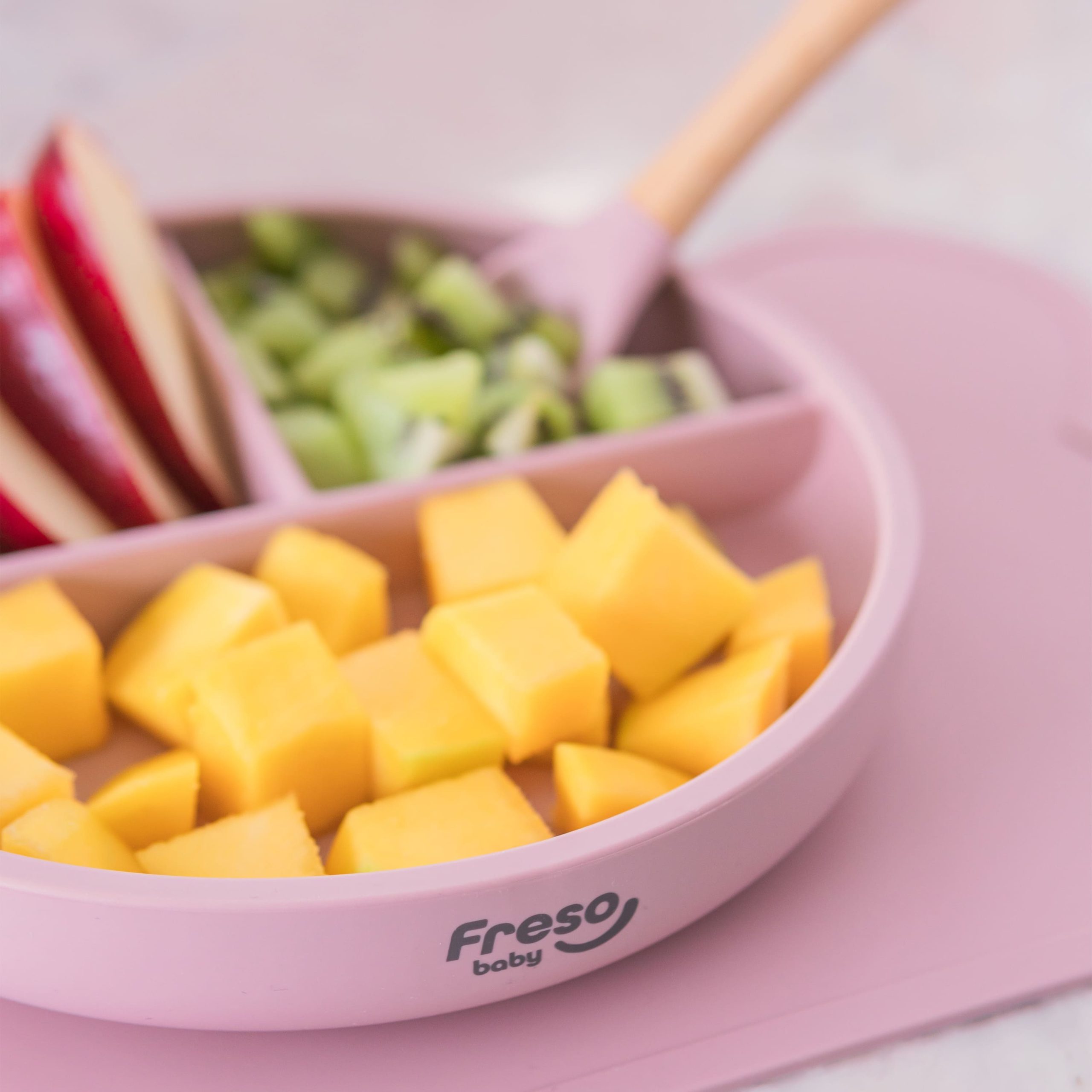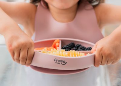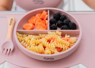 Feito em silicone de grau alimentício, atóxico e livre de BPA, o Prato de Silicone com Divisória e Ventosa Freso Baby é ótimo para a alimentação dos bebês e é indicado para as mamães que usam o Método BLW de introdução alimentar.