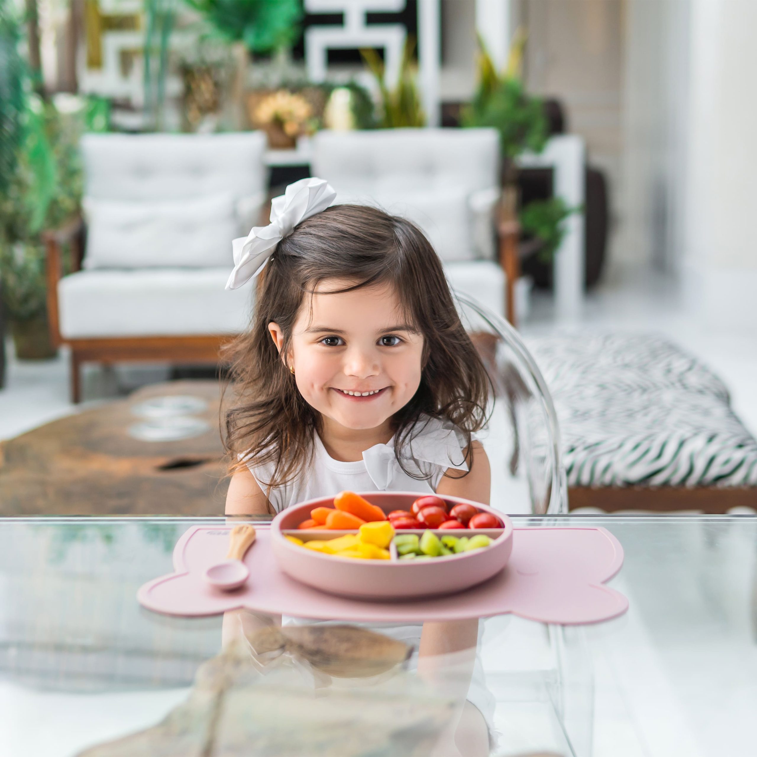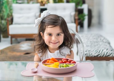 Seu design funcional incentiva as crianças na autoalimentação e suas divisórias proporcionam uma experiência de degustação segmentada, permitindo que você crie refeições saudáveis e balanceadas para seu bebê. Você pode, por exemplo, na divisão grande servir vegetais sazonais e verdes, na divisão média proteínas animais e vegetais e na divisão menor, os carboidratos. É possível servir sólidos e pastosos em um único pratinho infantil.