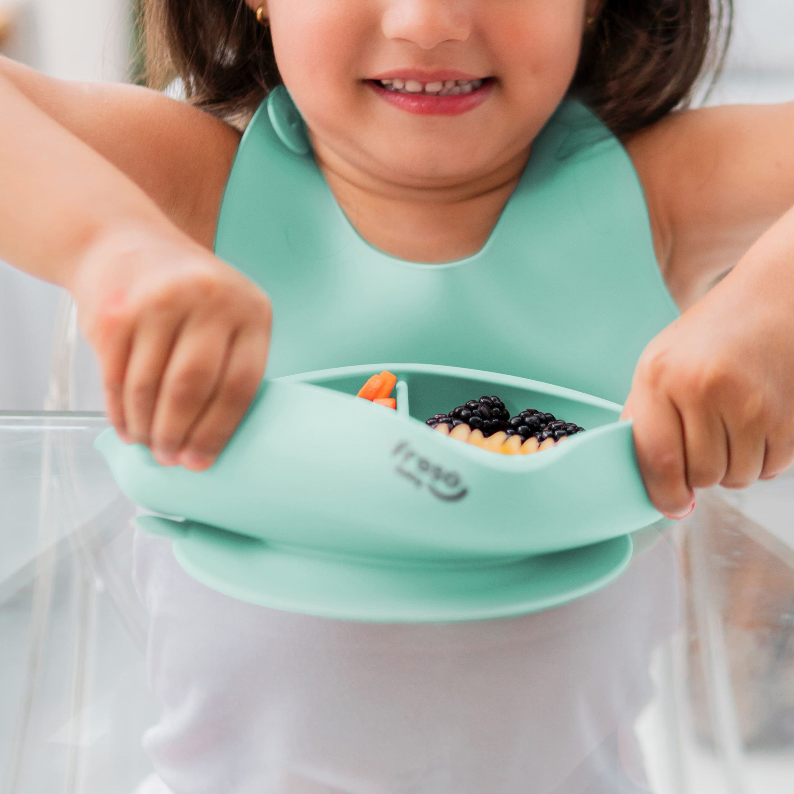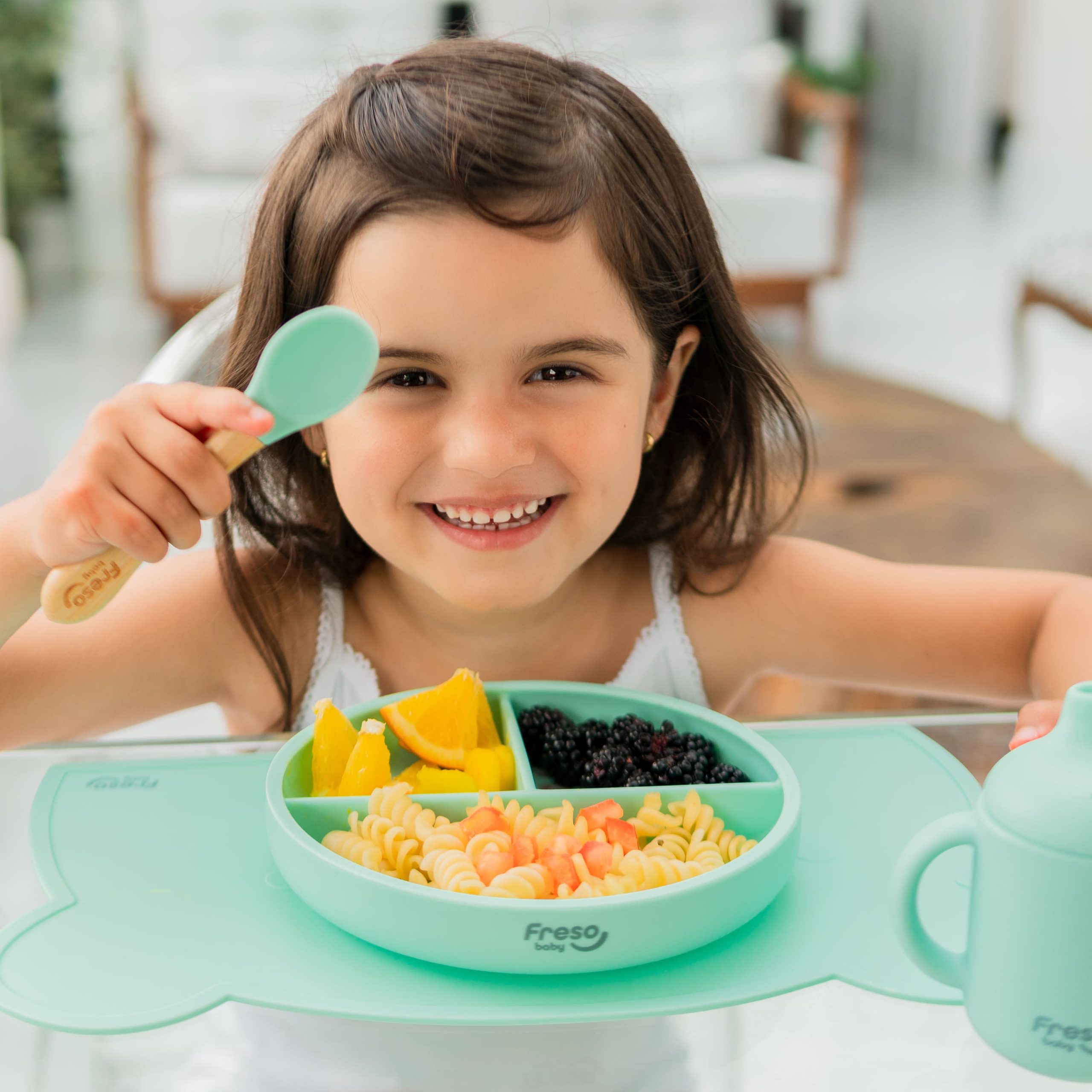 Até 256 caracteres: Prato Alimentação Infantil Bebê Freso Baby BLW Introdução Alimentar Bliss Silicone Alimentício Livre de BPA Atóxico Antimicrobiano Pratinho Refeição Criança Ventosa Alta Sucção com Divisórias Resistente e Seguro Verde