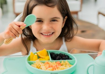 Seu design funcional incentiva as crianças na autoalimentação e suas divisórias proporcionam uma experiência de degustação segmentada, permitindo que você crie refeições saudáveis e balanceadas para seu bebê. Você pode, por exemplo, na divisão grande servir vegetais sazonais e verdes, na divisão média proteínas animais e vegetais e na divisão menor, os carboidratos. É possível servir sólidos e pastosos em um único pratinho infantil.