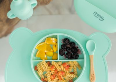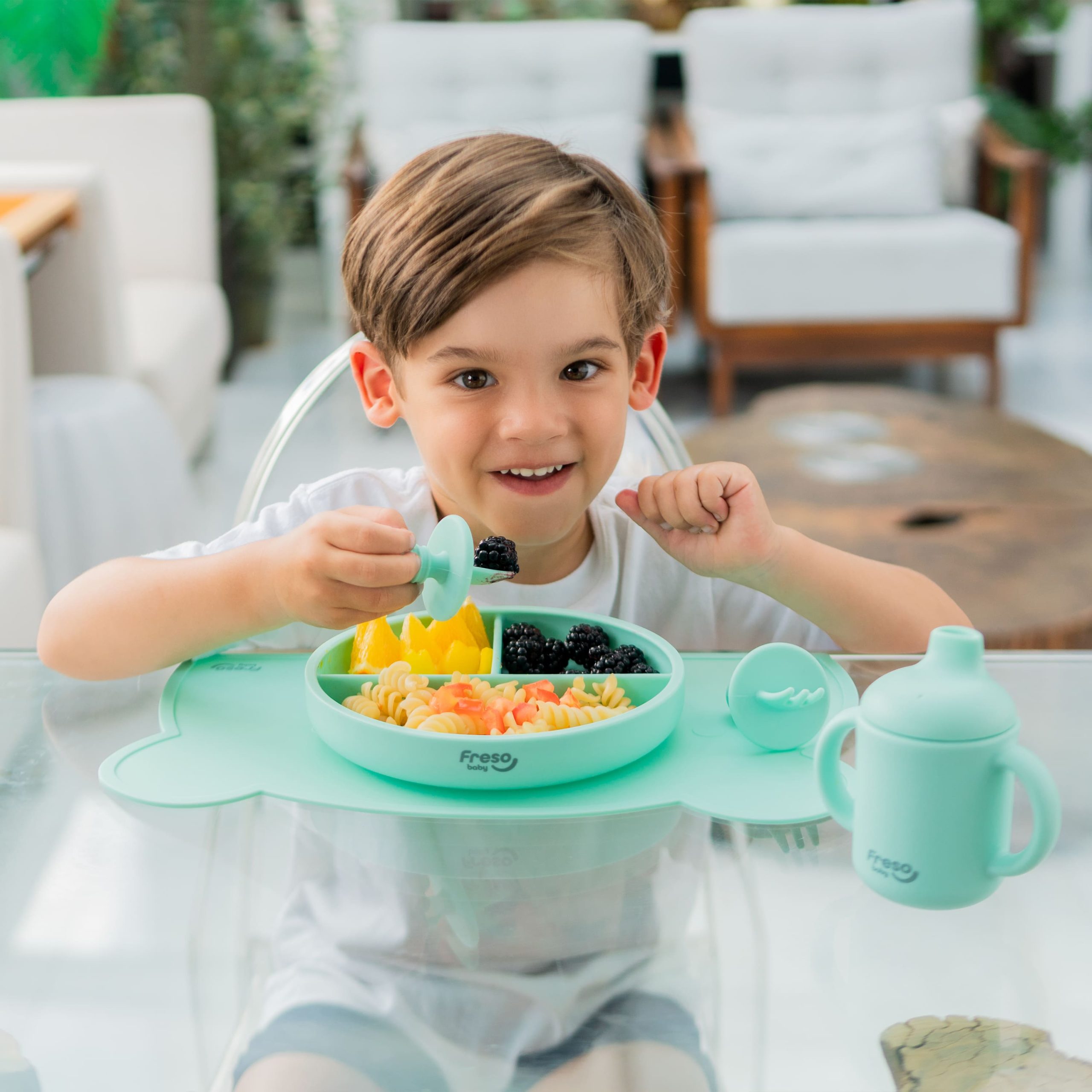 Feito em silicone de grau alimentício, atóxico e livre de BPA, o Prato de Silicone com Divisória e Ventosa Freso Baby é ótimo para a alimentação dos bebês e é indicado para as mamães que usam o Método BLW de introdução alimentar.