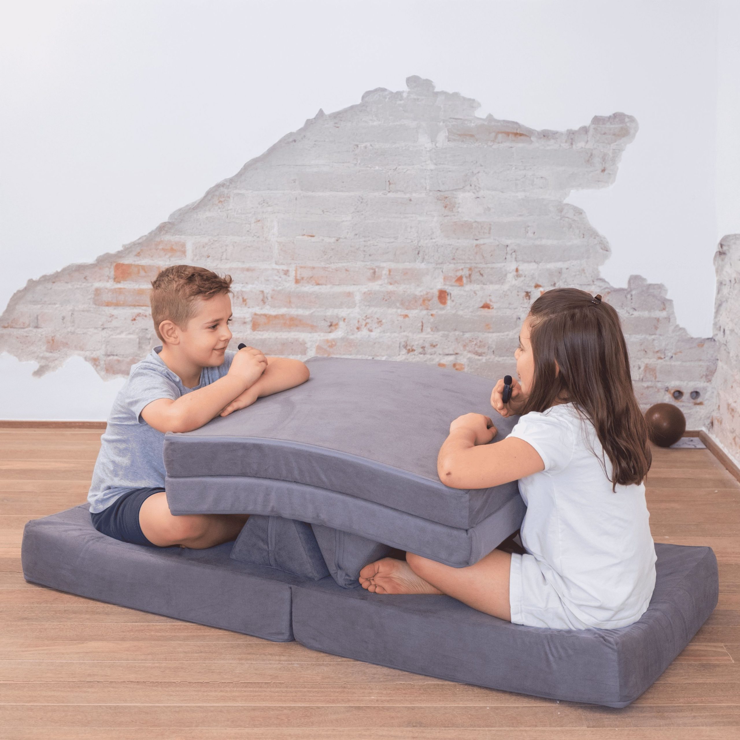 Um sofá de brincar montessori que estimula a criatividade, onde cada montagem se torna uma grande aventura.