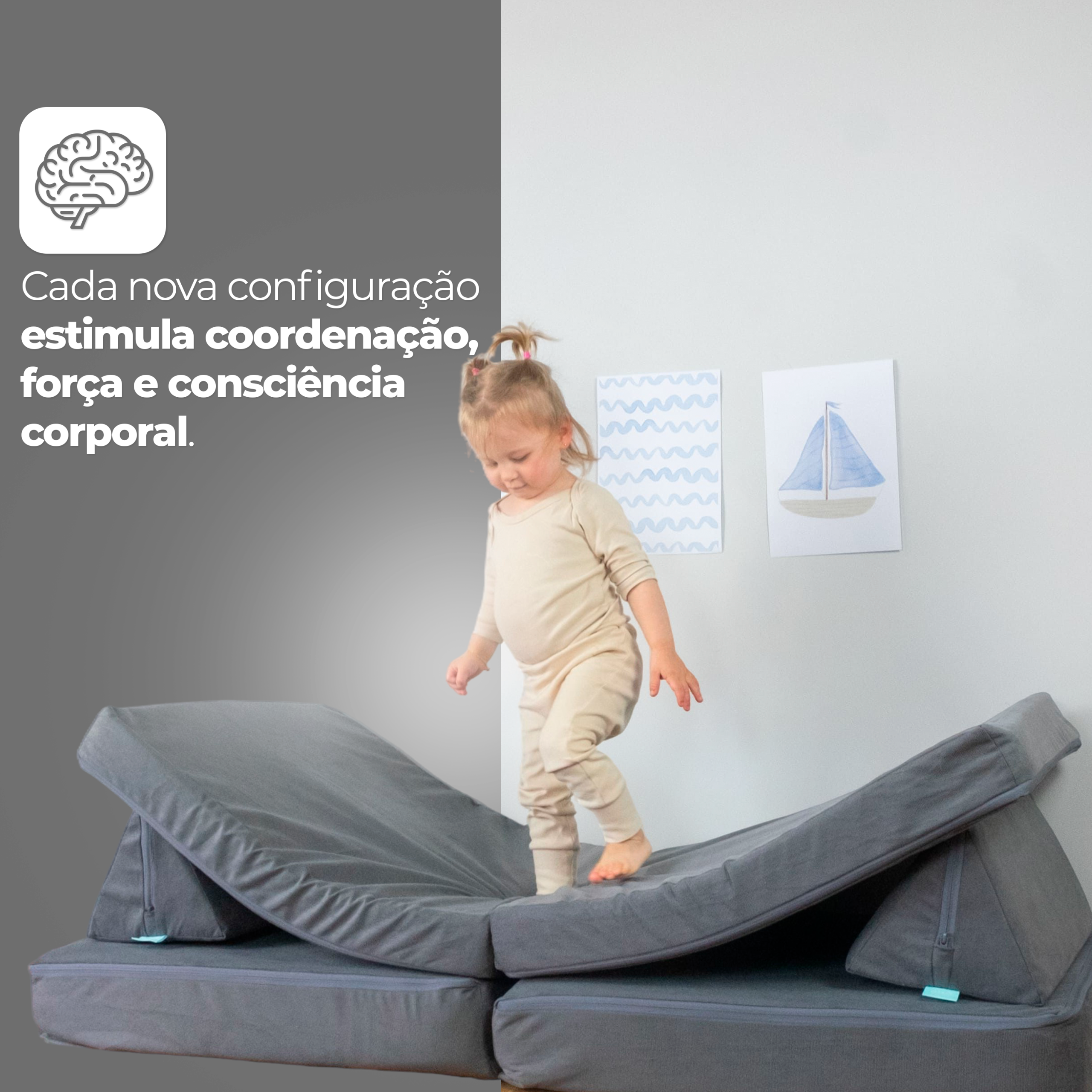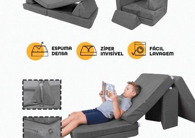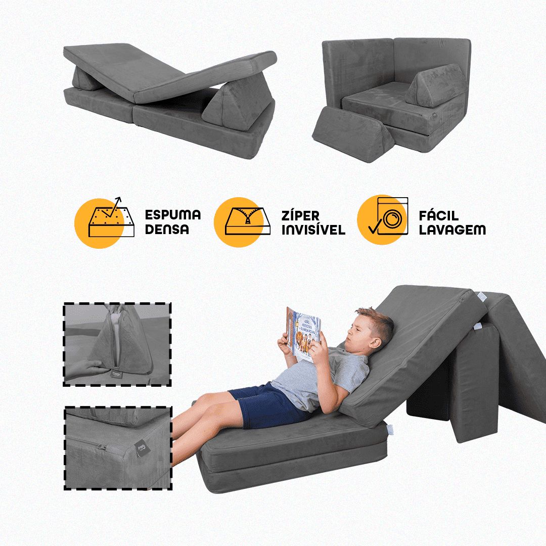 | TÍTULO: | Apresentação Sofá de Brincar Modular Infantil Montessoriano 4 peças Cinza |