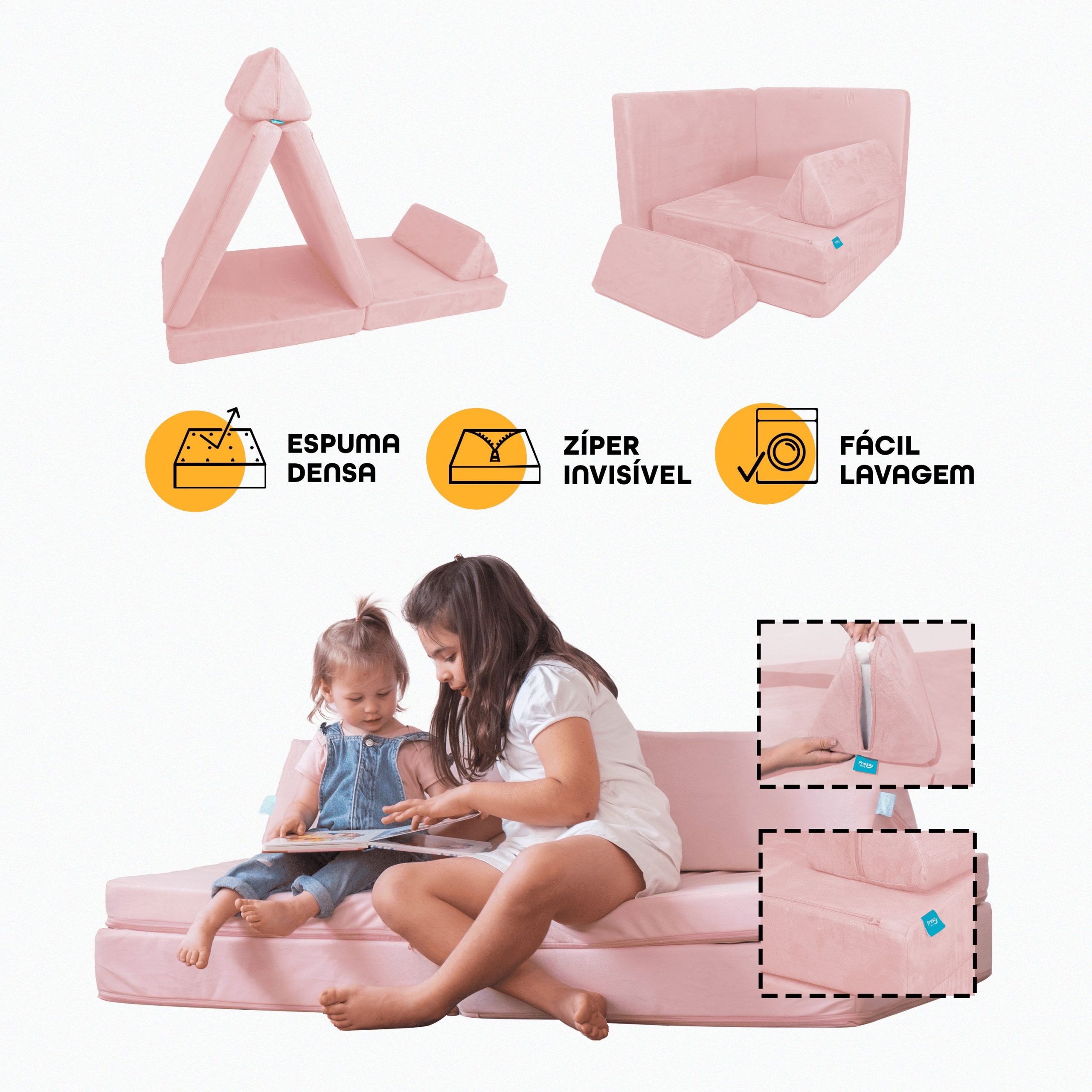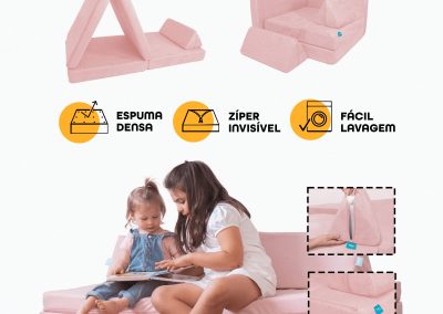 | TÍTULO: | Apresentação Sofá de Brincar Modular Infantil Montessoriano 4 peças Rosa |