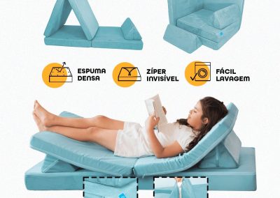 Um sofá de brincar montessori que estimula a criatividade, onde cada montagem se torna uma grande aventura.