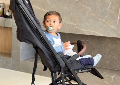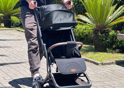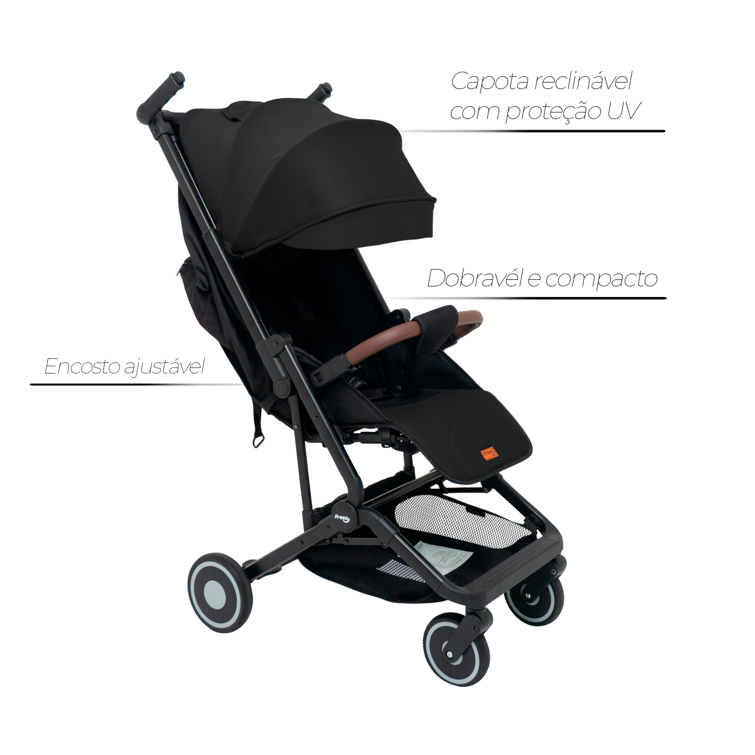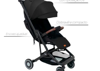 O banco reclinável até 150°, o cinto de segurança de 5 pontos e a barra de proteção garantem mais conforto e proteção para o bebê. Já o toldo com proteção UV e visor peek-a-boo com fechamento magnético oferece maior cobertura e permite acompanhar a criança durante o passeio, enquanto o cesto de compras e o bolso porta-treco trazem ainda mais praticidade para o dia a dia.