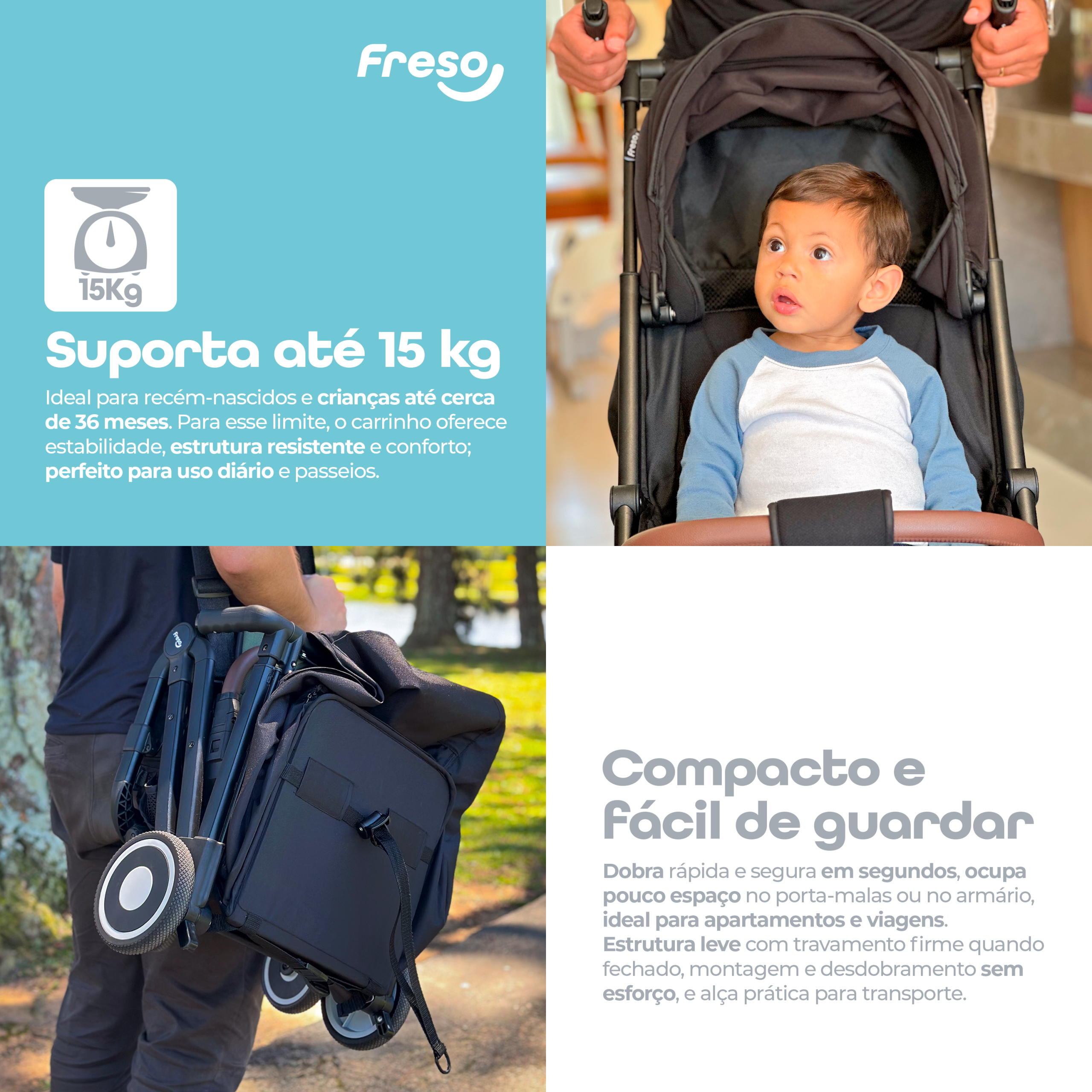 Freso Carrinho de Bebê Compact Reclinável até 15 kg, Leve, Seguro e Ideal para Passeios e Uso Diário