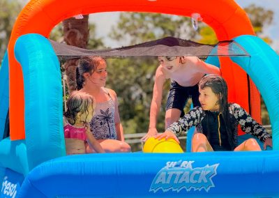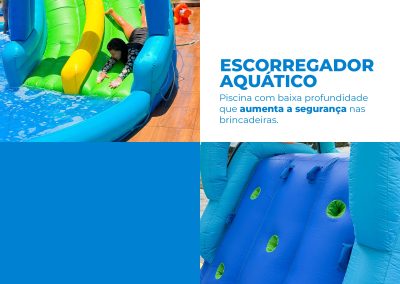Com escorregador duplo com saída para piscina, túnel interativo, Esguichos de água e fonte contínua, o Shark Attack funciona como um centro de diversão aquático completo. A fonte mantém o escorregador sempre molhado, garantindo mais fluidez na descida e ampliando a diversão na água, permitindo que várias crianças brinquem juntas com segurança.