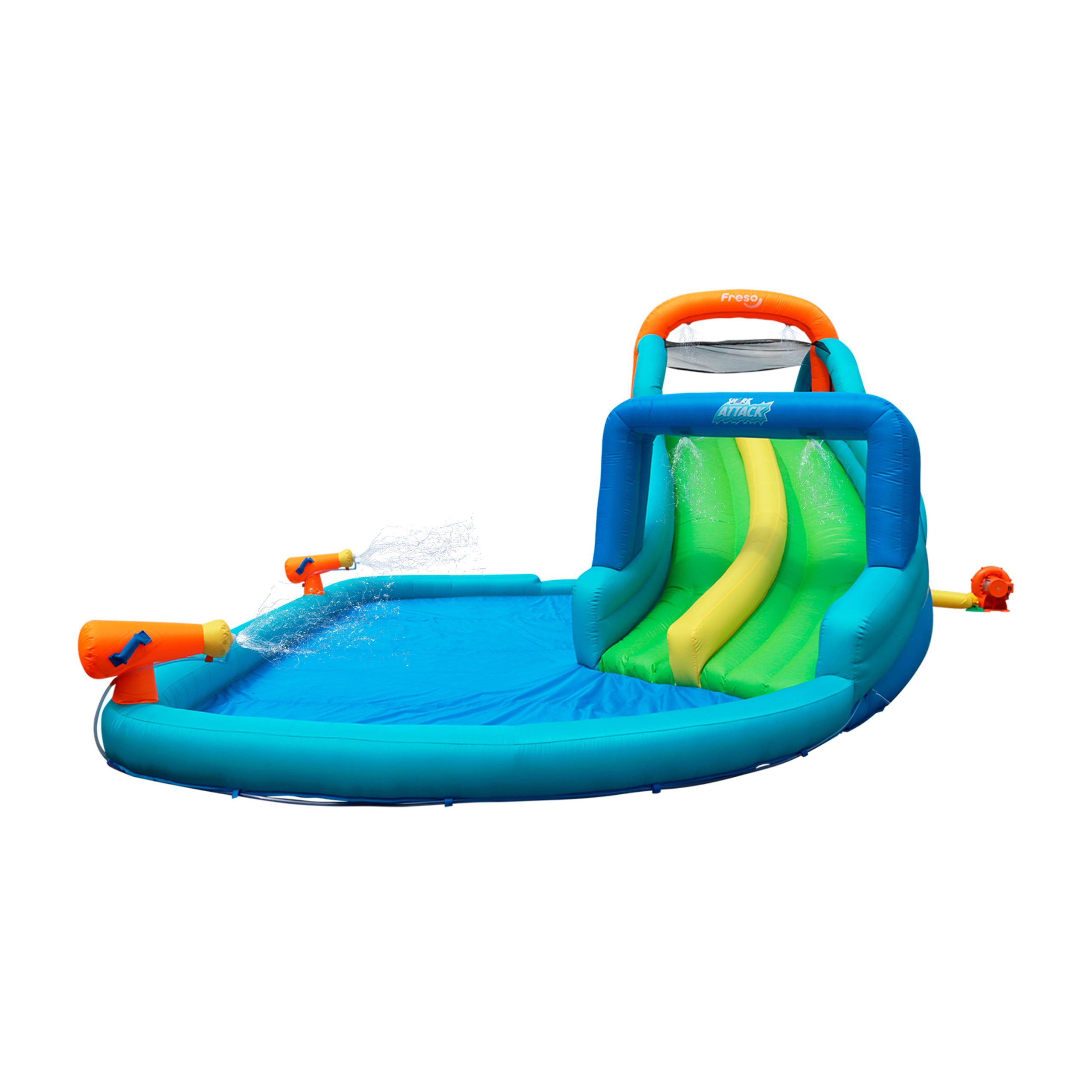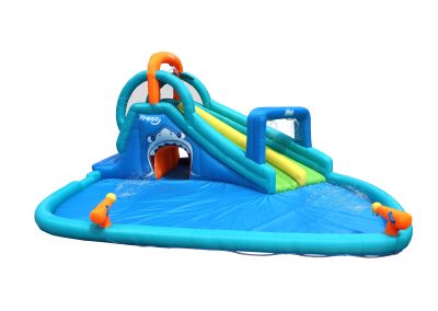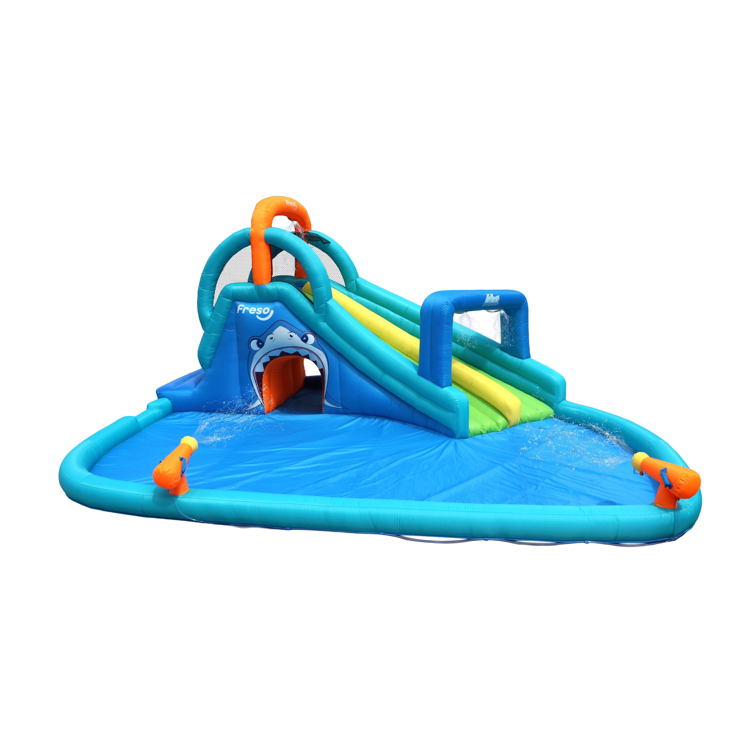 Freso Playground Piscina Shark Attack Centro Aquático Inflável com Escorregador Duplo Tobogã Infantil para crianças de 3 a 10 anos