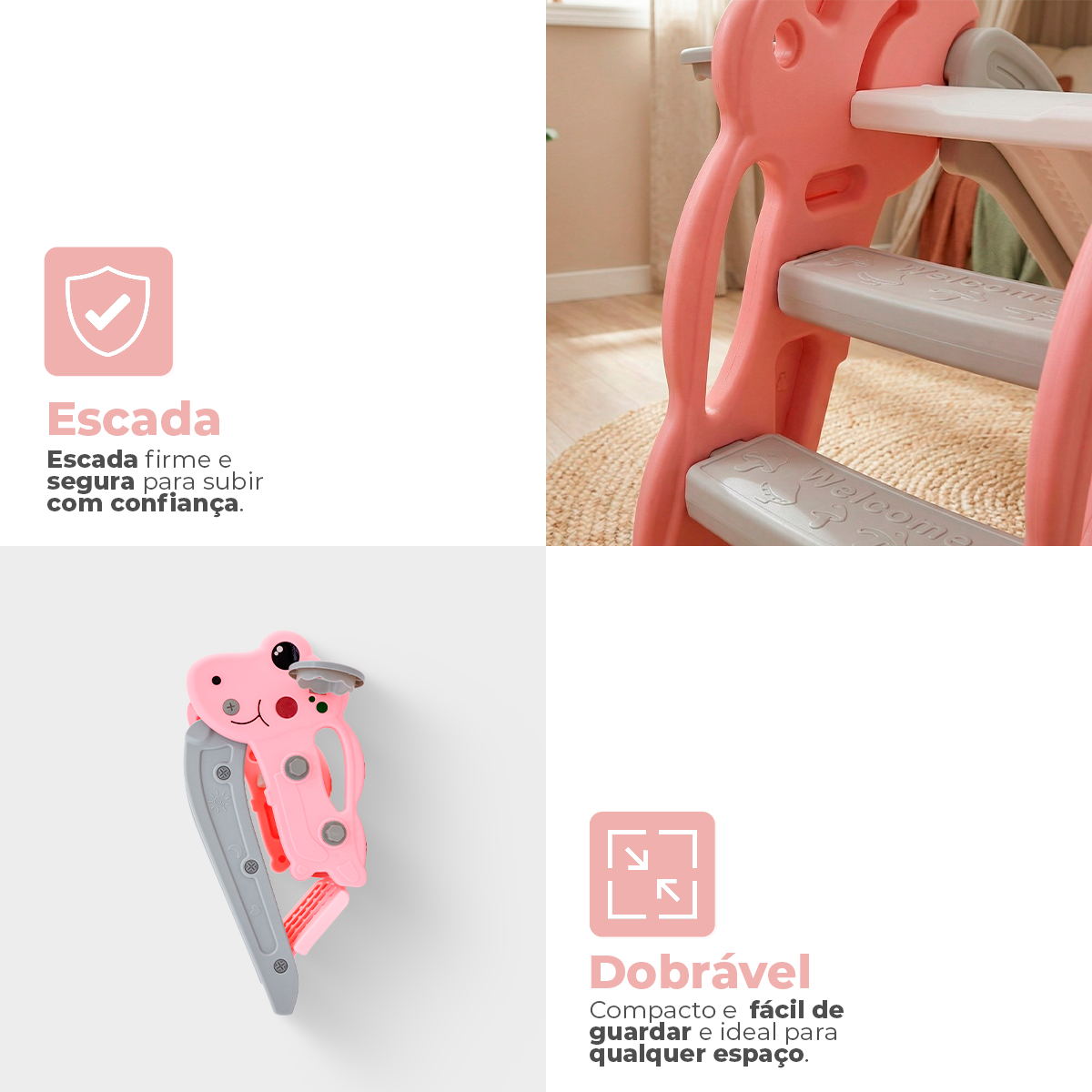 Transforme qualquer espaço em um ambiente de pura alegria e movimento com o Escorregador Infantil Dino Freso. Com seu design lúdico de Dinossauro, acompanha uma escadinha com apoio para as mãos sem contar o escorrega, tornando cada brincadeira mais segura e divertida.